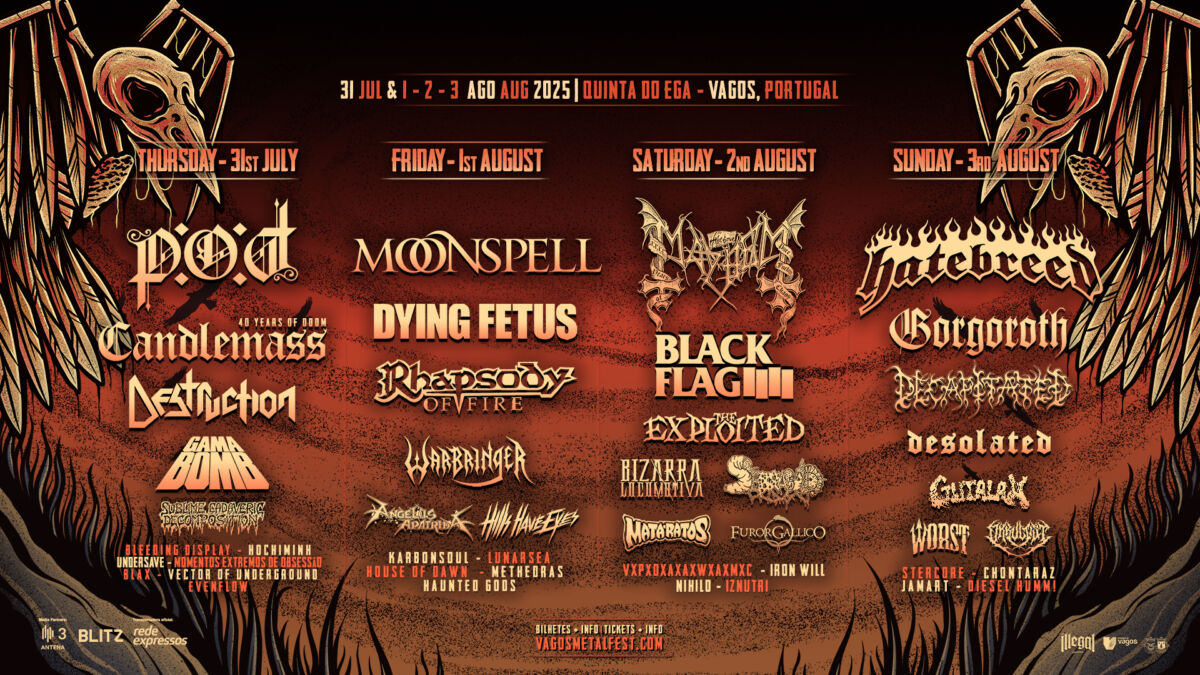 Posiblemente el mejor festival de Metal en el país vecino; Vagos Metal Fest, festival que se celebrará en Quinta Do Ega de Vagos, entre el 28 y el 30 de julio de 2022. Dicho festival fue aplazado en sus dos últimas ediciones, por la Covid, y este año recupera buena parte del cartel que tenía anunciado entonces, pero añadiendo otras grandes bandas.