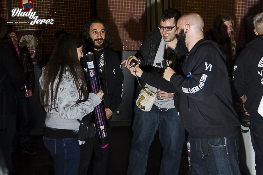 minutos antes del show, una iniciativa que resulto ser una buena idea consiguiendo colocar la totalidad de los billetes puestos a la venta, los cuales incluían carteles, colgante identificativo y departir con los músicos en un ambiente distendido y ameno, siendo una idea buena en nuestro opinión, es una experiencia que se puede mejorar para ofrecer algo un poco más ordenado, echamos de menos algún foto call ó incluso un lugar para que la banda firmara de una forma un poco más cómoda, aún así es algo que resaltamos como bueno y que se debería hacer de forma más o menos habitual para demostrar que este tipo de acciones no están al alcance solo de las bandas extranjeras.