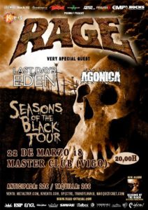 Junto a Rage estarán actuando como bandas invitadas los asturianos Last Days Of Eden y los vigueses Agonica.